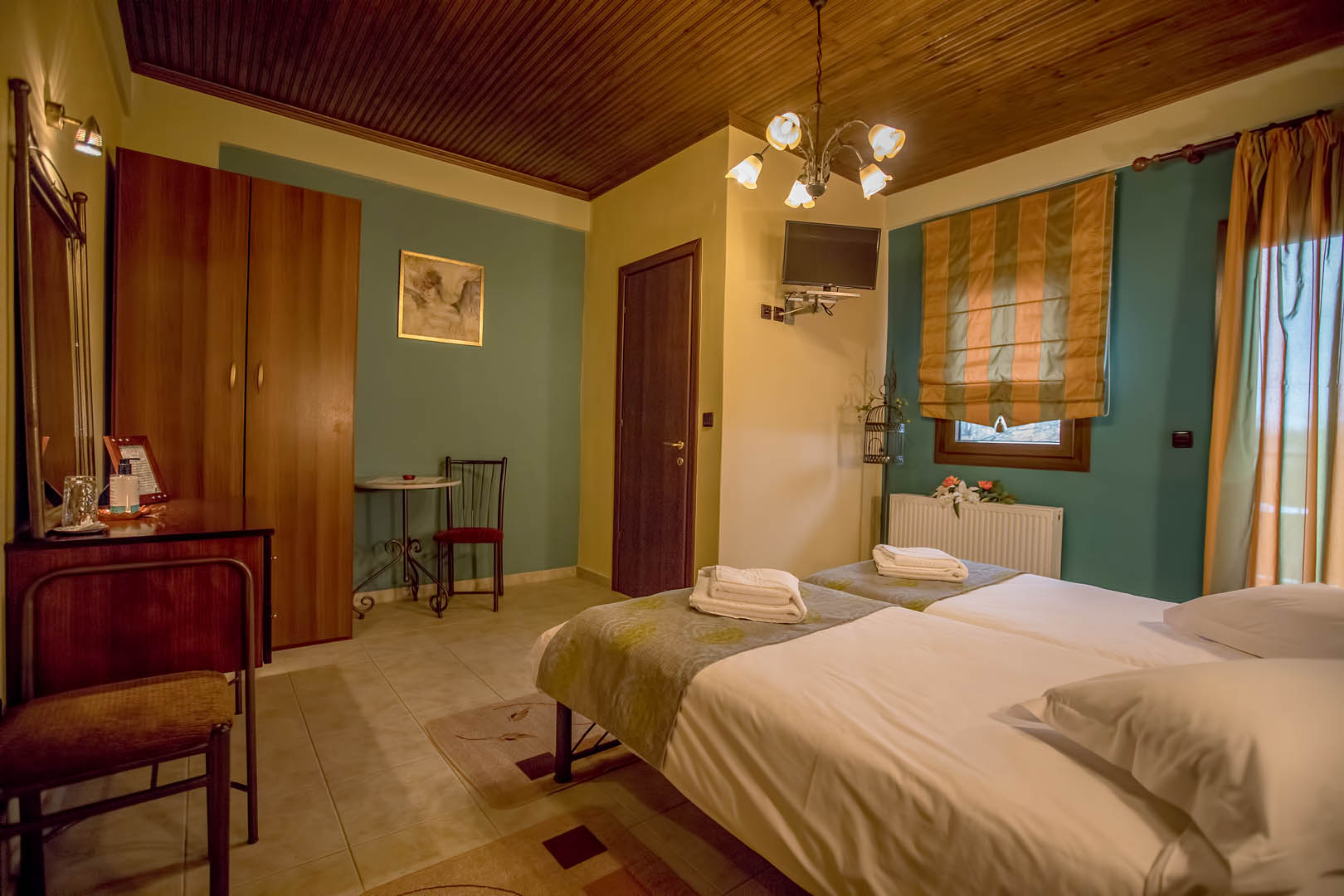Τέσσερα από τα δωμάτια του ξενώνα Κύνθια διαθέτουν τζάκι και τα περισσότερα αγκαλιάζονται από τη θέα της Λίμνης Πλαστήρα. Η Αλθαία, η Αστοίβη, το Γυνέριο, ο Ελλέβορος, η Ιασμή και το Υπέρικο έχουν ως στόχο να προσφέρουν μία διαμονή που συνδυάζει την άμεση και αισθητική απόλαυση.